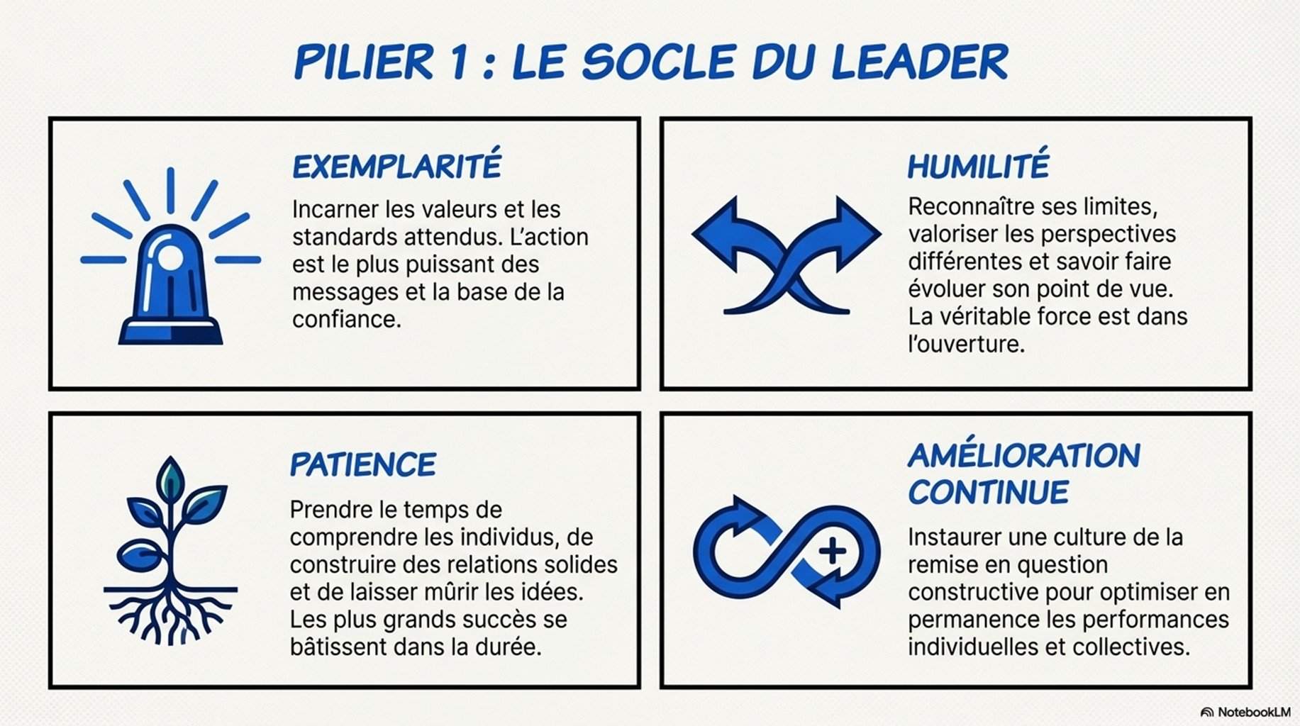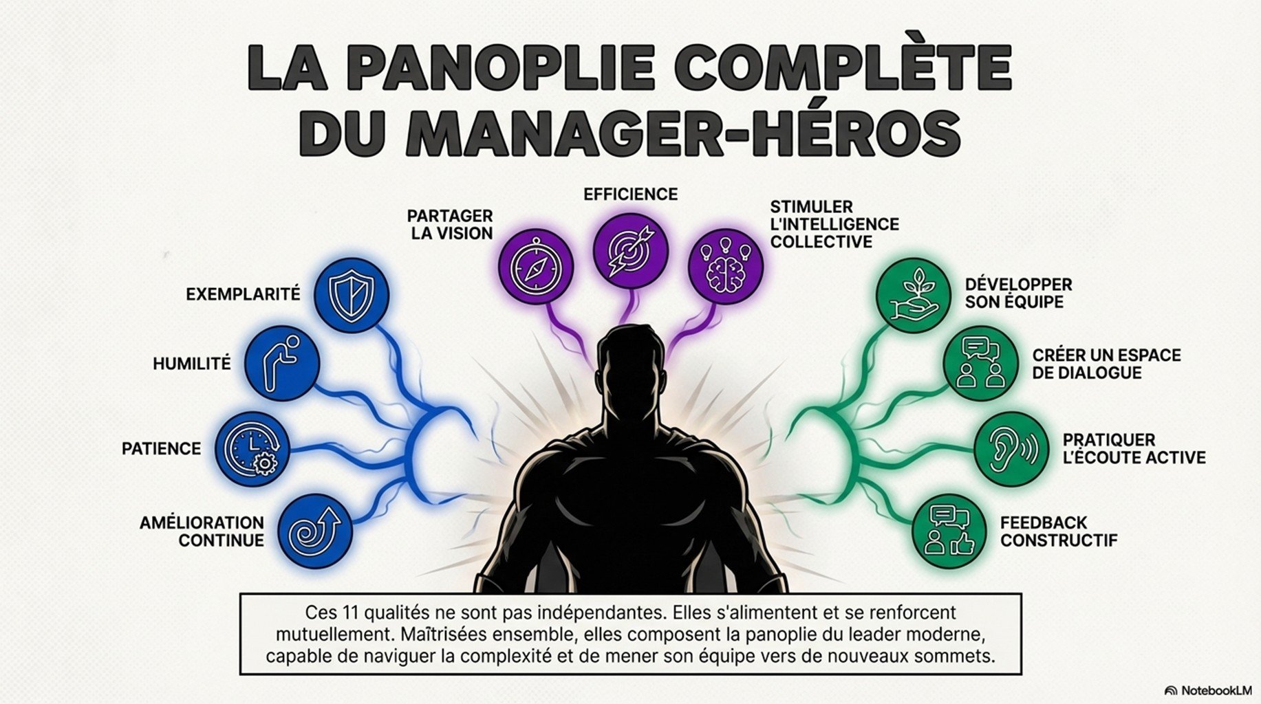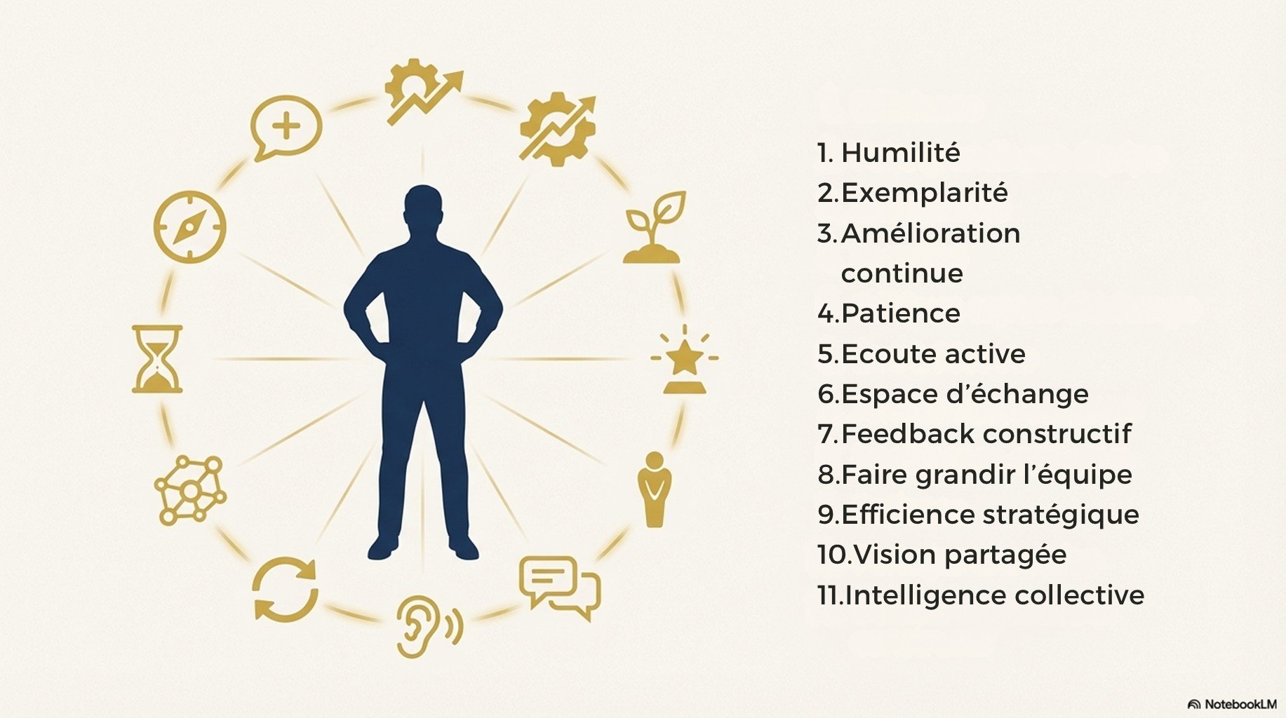 Vidéo pédagogique et 4 powerpoint centrés sur 11 qualités managériales clés, traduites en comportements observables, outils et rituels opérationnels. Application immédiate : objectifs, priorisation, communication, feedback, délégation, pilotage par indicateurs, résolution de problèmes, décision, gestion de conflits, coaching et amélioration continue. Utilisable en auto-formation ou comme support de session présentielle.